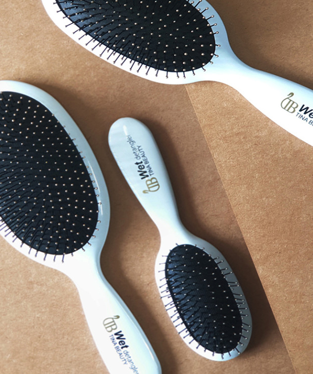 Tina Beautyは、独自の植毛技術によって多様なピン構造を持つクッションブラシを製造しています。